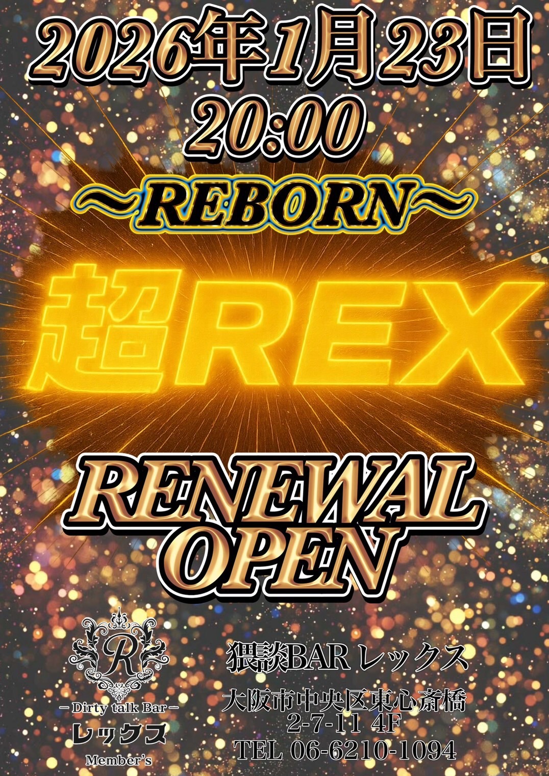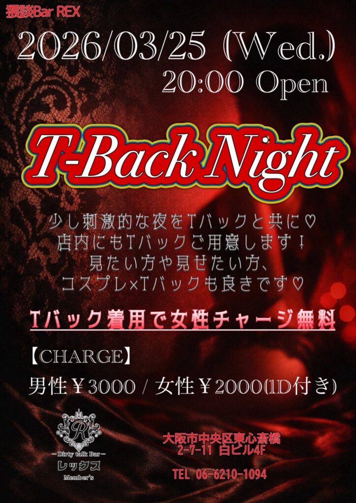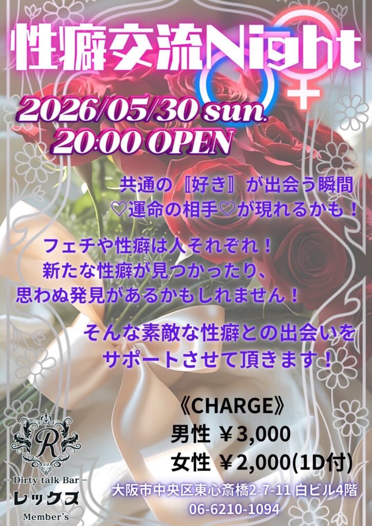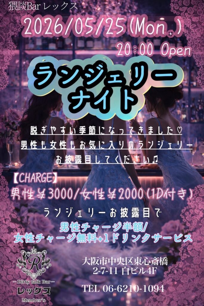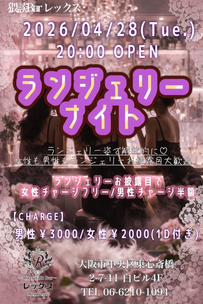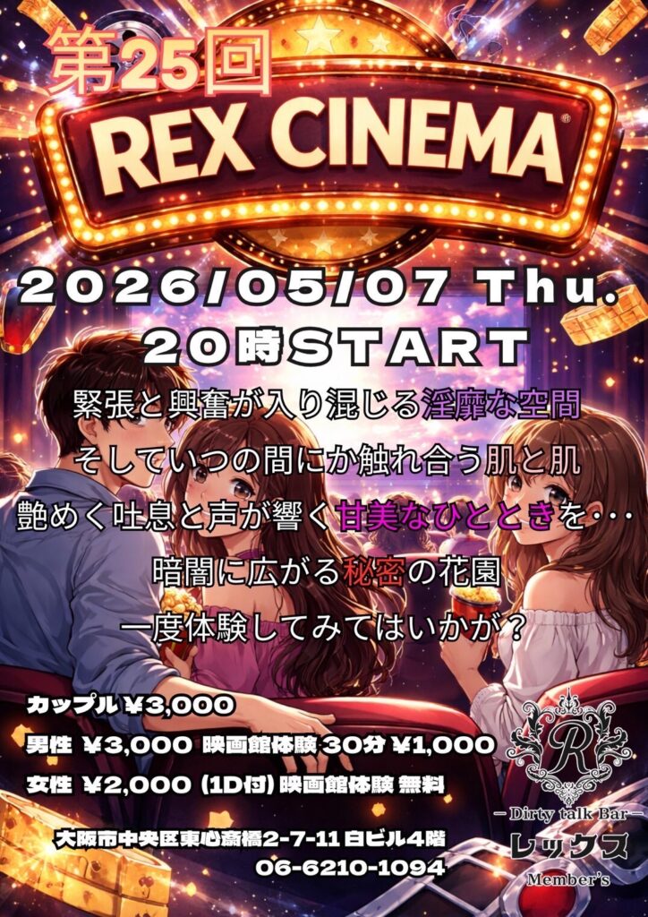大阪心斎橋の繁華街にひっそりと佇むバー レックス。そこは様々な性癖や悩みを抱えた人々の心の拠り所になる不思議な空間。歓談・猥談を楽しむ大人の社交場です。性別や身分に関係なく、誰もが愉しくオープンになれる魔法のひととき。普段の生活では気軽に話すことが出来ないセンシティブな部分を隠すことなく話せる唯一無二の空間です。あなたも足を踏み入れてみませんか?きっと忘れられない一夜になることをお約束します。