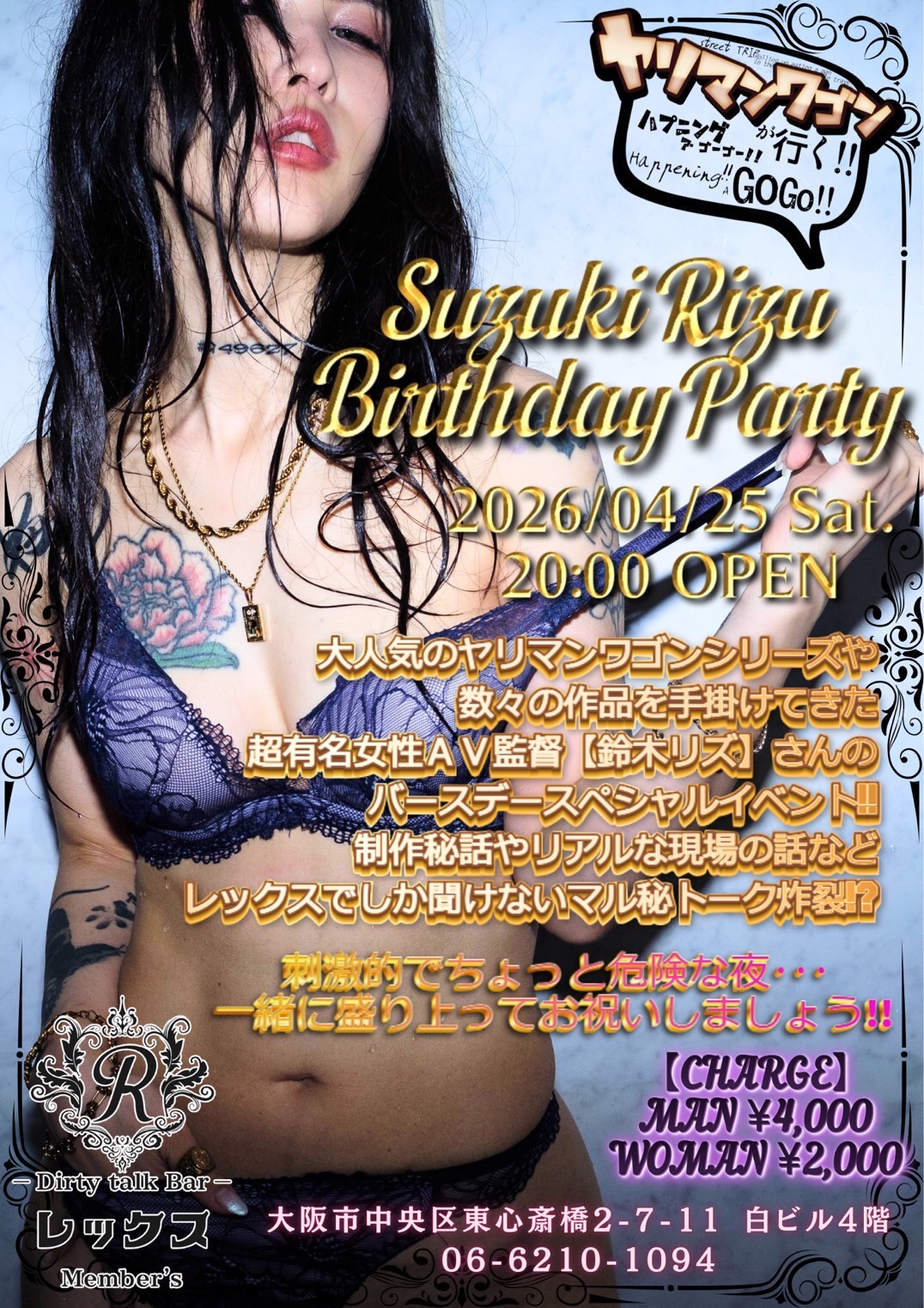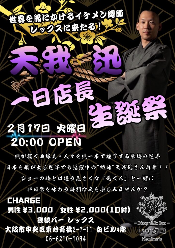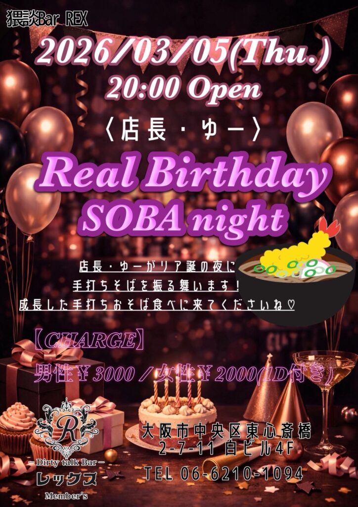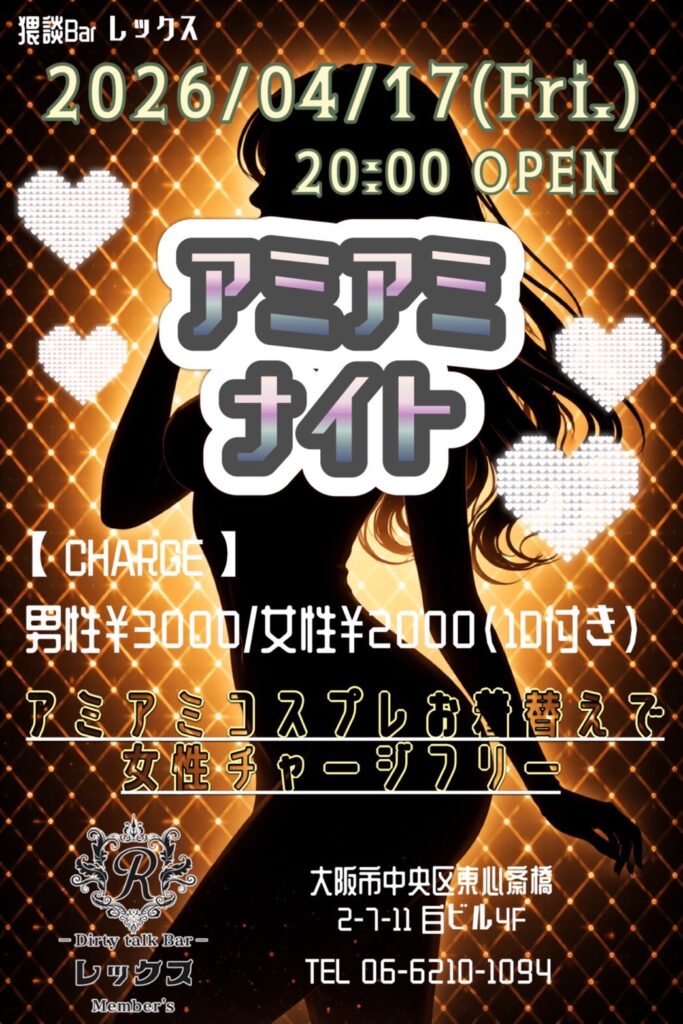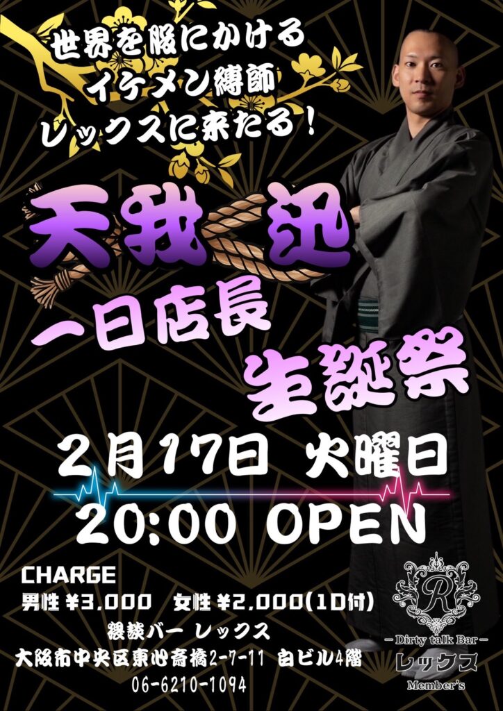 大阪心斎橋の繁華街にひっそりと佇むバー レックス。そこは様々な性癖や悩みを抱えた人々の心の拠り所になる不思議な空間。歓談・猥談を楽しむ大人の社交場です。性別や身分に関係なく、誰もが愉しくオープンになれる魔法のひととき。普段の生活では気軽に話すことが出来ないセンシティブな部分を隠すことなく話せる唯一無二の空間です。あなたも足を踏み入れてみませんか?きっと忘れられない一夜になることをお約束します。